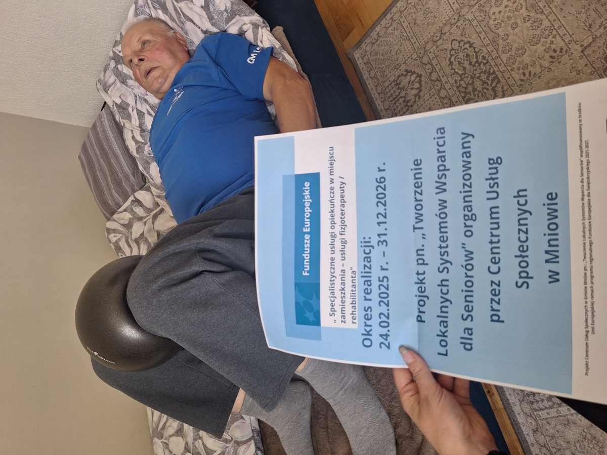 Specjalistyczne usługi opiekuńcze w miejscu zamieszkania - usługi fizjoterapeuty/rehabilitanta realizowane w ramach projektu FESW.09.04-IZ.00-0003/24 o tytule Tworzenie Lokalnych Systemów Wsparcia dla Seniorów.